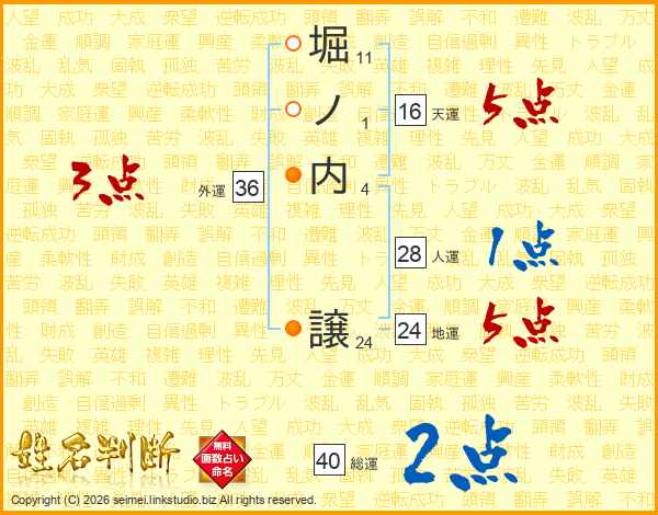 堀ノ内譲さんの総運は40画の2点!