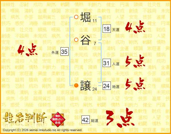 堀谷譲さんの天運は18画の4点!