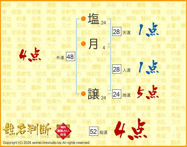 塩(24画)月(4画) 譲(24画)