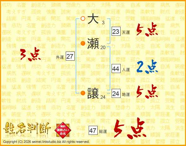 大瀬譲さんの総運は47画の5点!