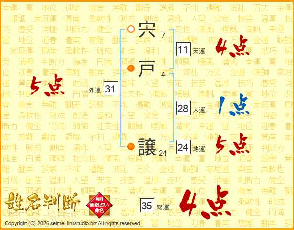 宍戸譲さんの外運は31画の5点!