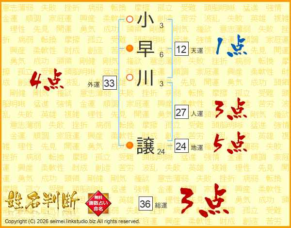 小早川譲さんの総運は36画の3点!