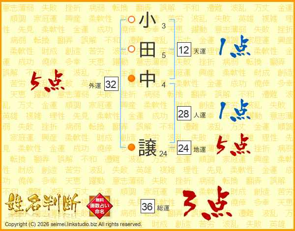 小田中譲さんの総運は36画の3点!