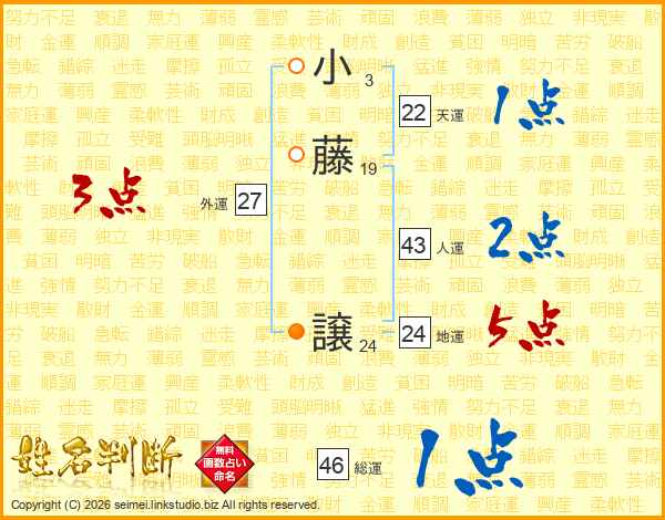 小藤譲さんの総運は46画の1点!