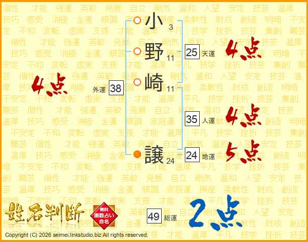 小野崎譲さんの人運は35画の4点!