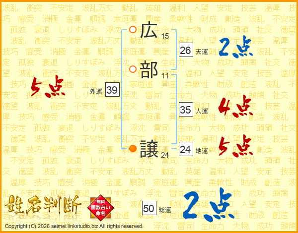 広部譲さんの天運は26画の2点!