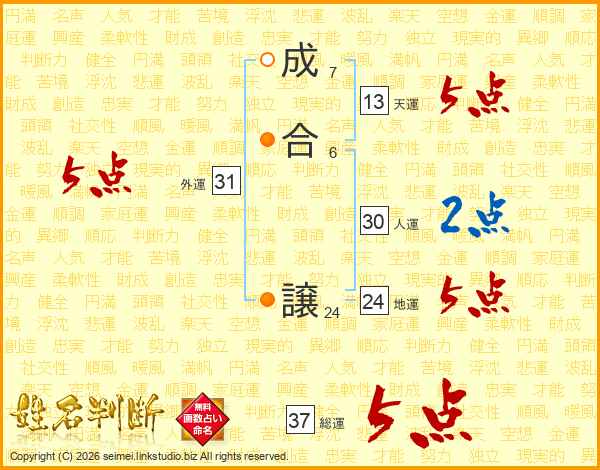 金運 順調 家庭運 興産 柔軟性 財成 創造