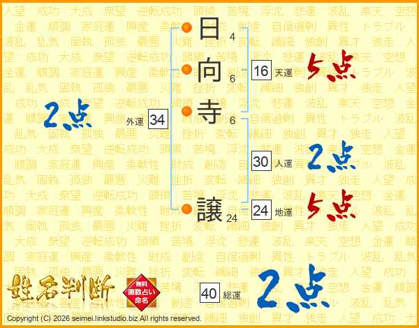 日向寺譲さんの総運は40画の2点!