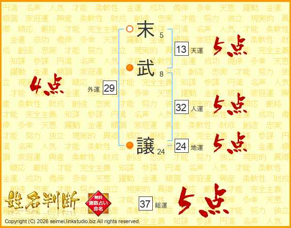 末(5画)武(8画) 譲(24画)