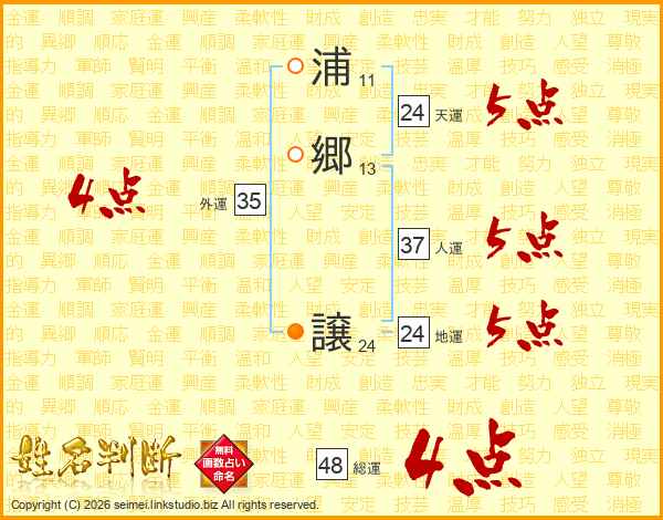 浦郷譲さんの総運は48画の4点!