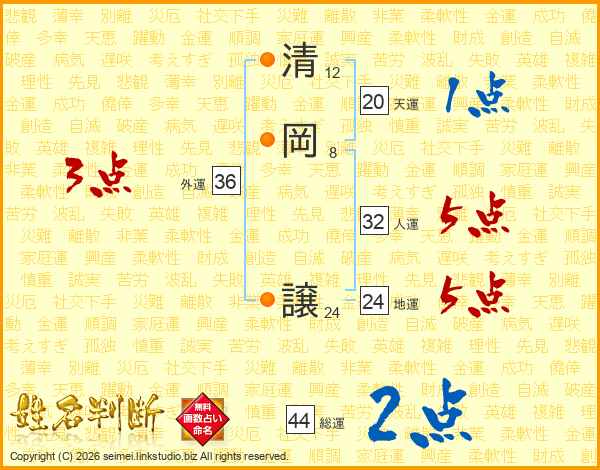 清岡譲さんの総運は44画の2点!