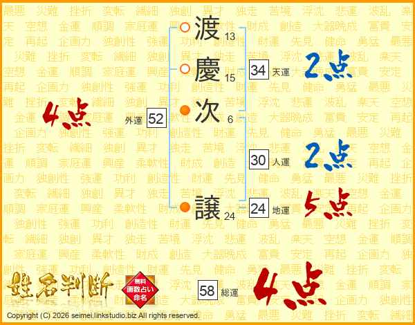 渡(13画)慶(15画)次(6画) 譲(24画)