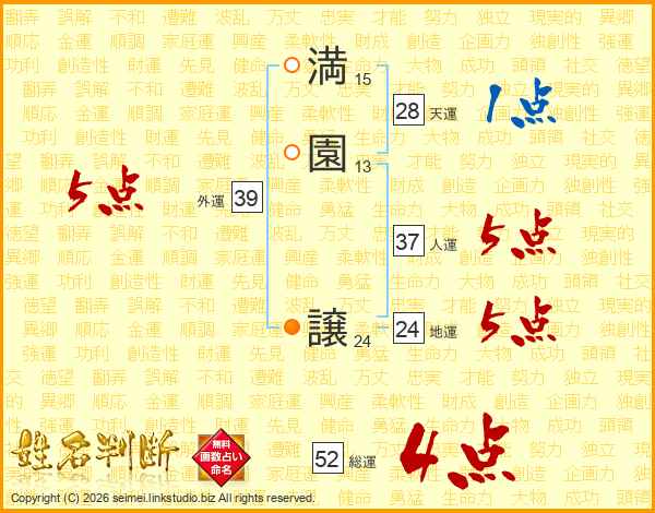 満園譲さんの総運は52画の4点!