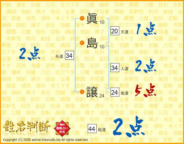 眞島譲さんの総運は44画の2点!