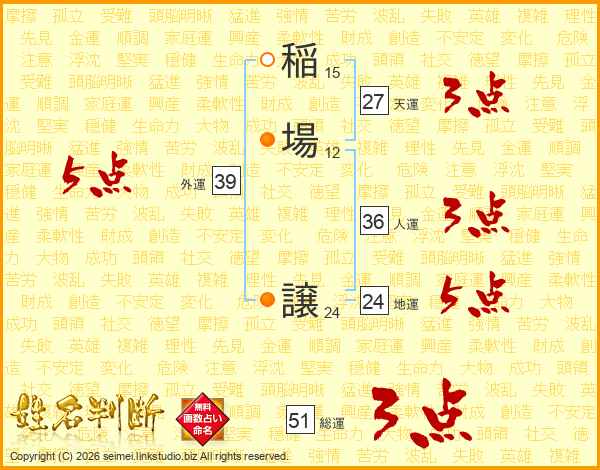 稲場譲さんの外運は39画の5点!