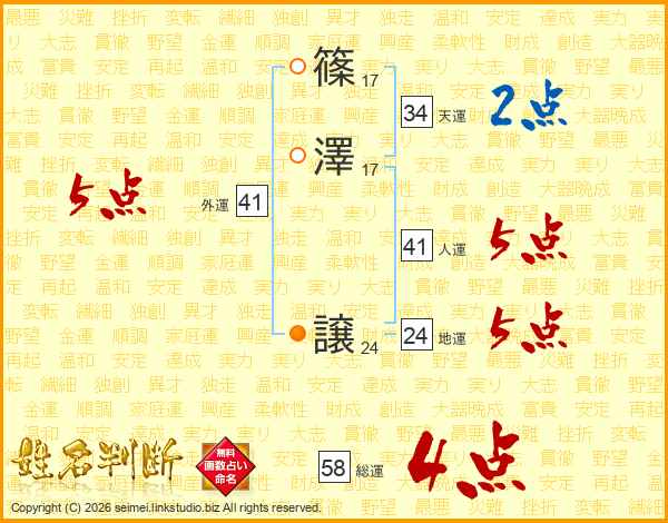 篠澤譲さんの総運は58画の4点!