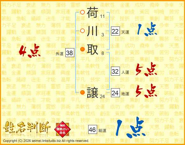荷川取譲さんの総運は46画の1点!