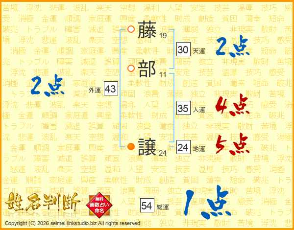 藤部譲さんの天運は30画の2点!