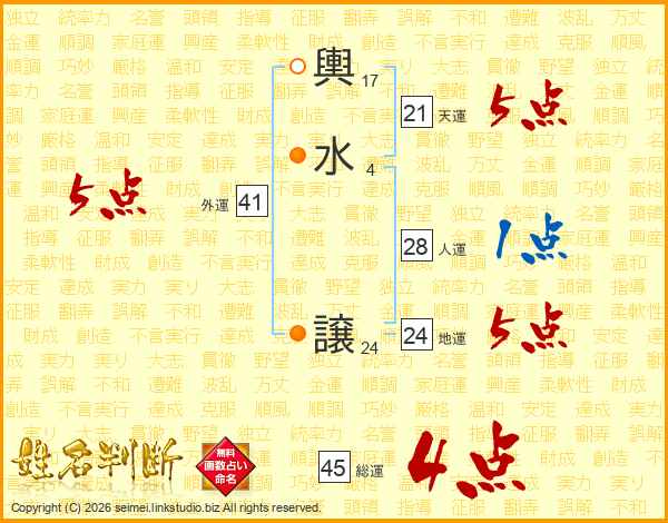 輿水譲さんの総運は45画の4点!