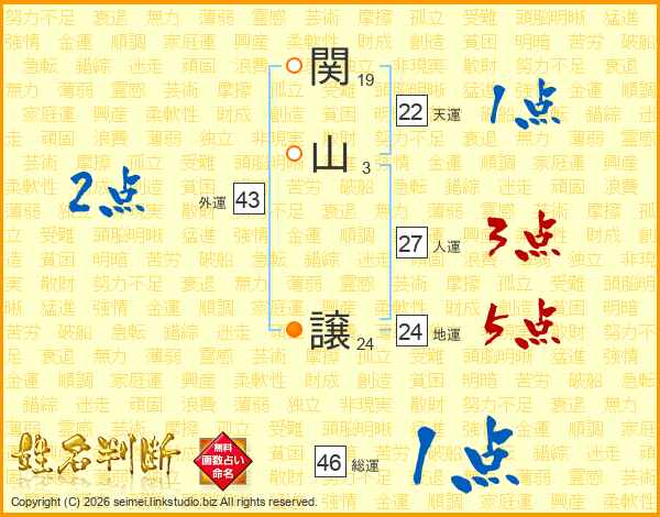 関山譲さんの天運は22画の1点!