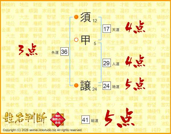 須甲譲さんの総運は41画の5点!