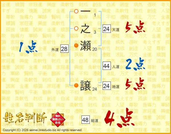 一之瀬譲さんの総運は48画の4点!