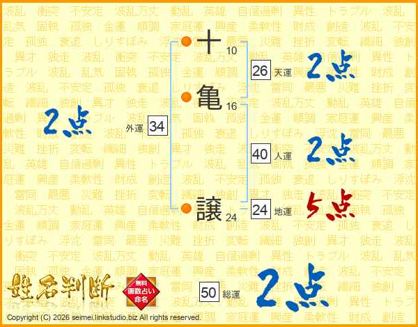 十亀譲さんの天運は26画の2点!