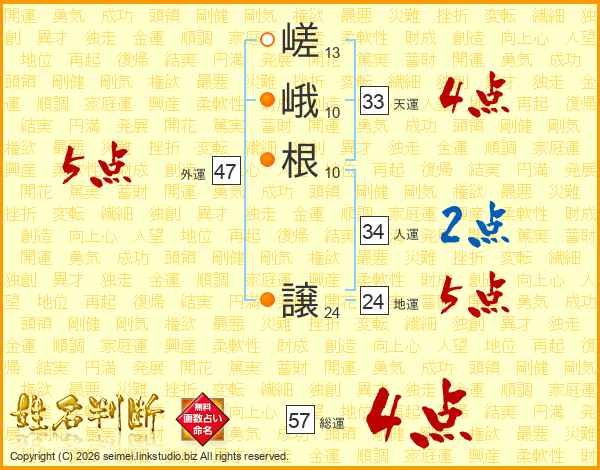 嵯(13画)峨(10画)根(10画) 譲(24画)