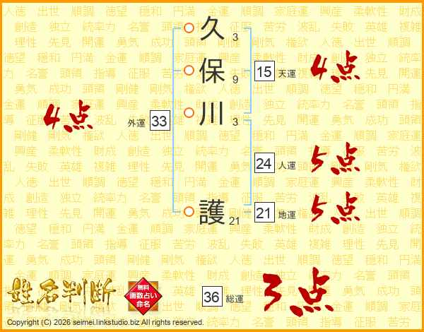 久保川護さんの天運は15画の4点!