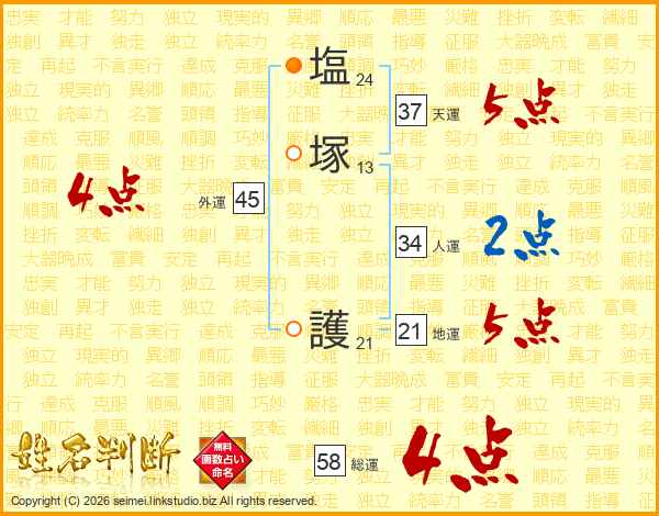 塩塚護さんの総運は58画の4点!