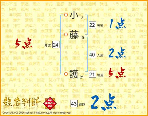 小藤護さんの地運は21画の5点!