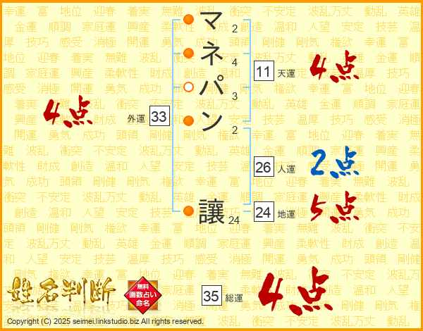 マ(2画)ネ(4画)パ(3画)ン(2画) 讓(24画)