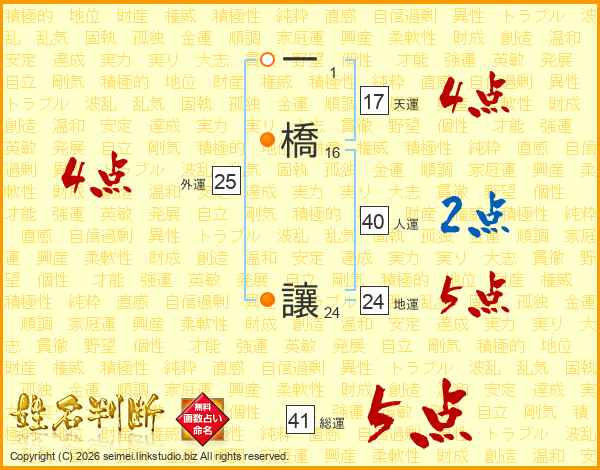 一橋讓さんの総運は41画の5点!