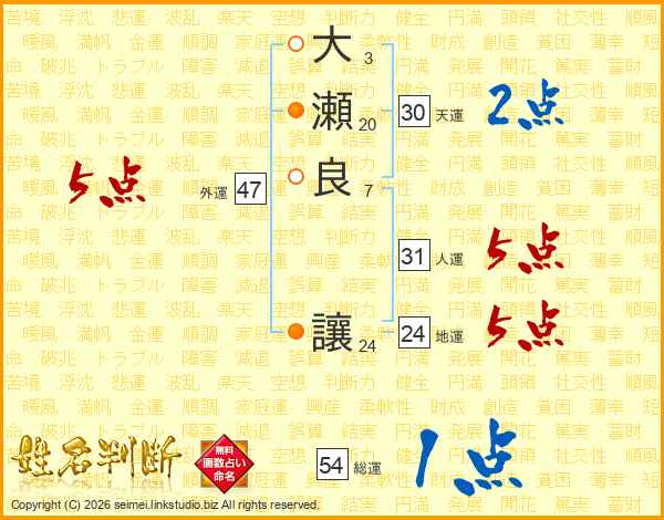 大(3画)瀬(20画)良(7画) 讓(24画)