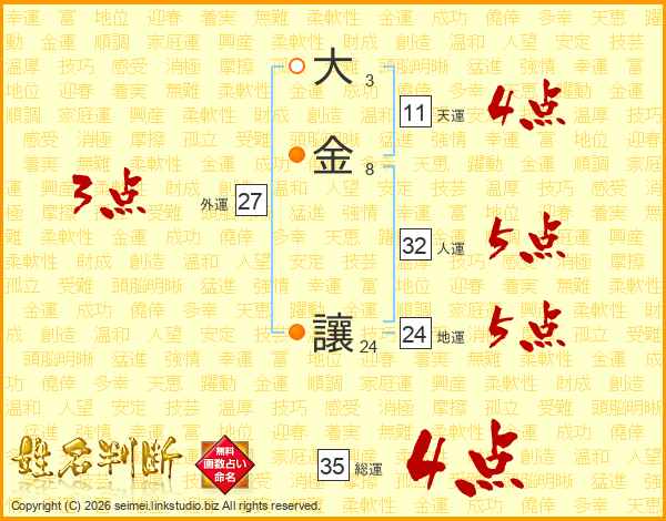 大金讓さんの総運は35画の4点!