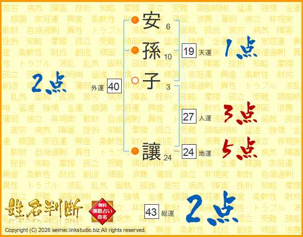 安孫子讓さんの総運は43画の2点!
