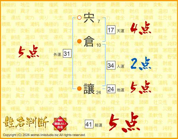 宍倉讓さんの総運は41画の5点!