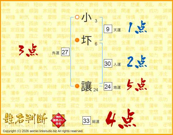 小圷讓さんの総運は33画の4点!