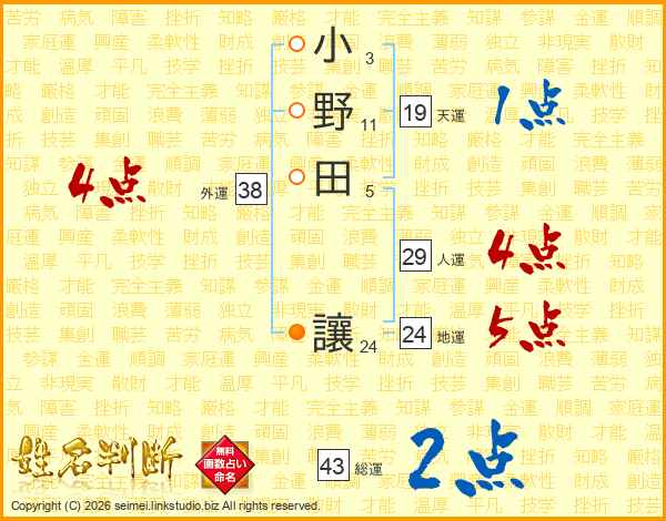 小野田讓さんの人運は29画の4点!