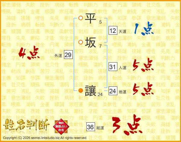 平坂讓さんの総運は36画の3点!