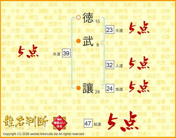 金運 順調 家庭運 興産 柔軟性 財成 創造