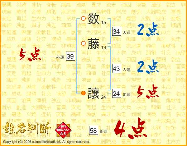 数藤讓さんの総運は58画の4点!