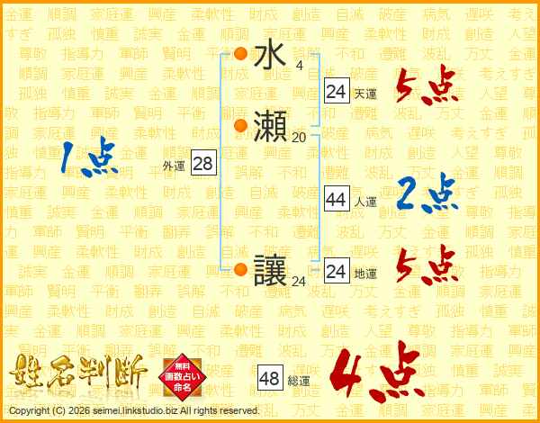 水瀬讓さんの総運は48画の4点!