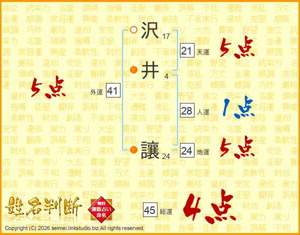 沢井讓さんの総運は45画の4点!