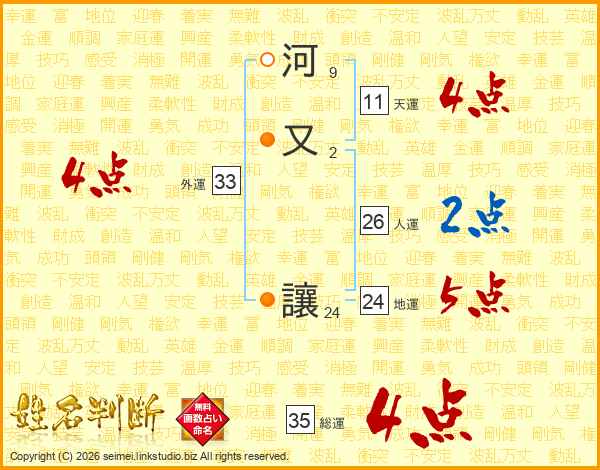 河又讓さんの外運は33画の4点!