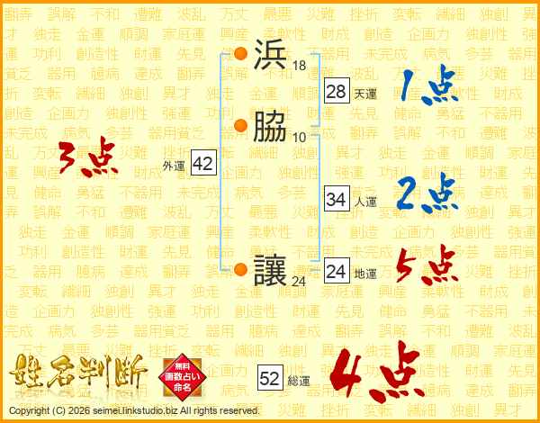 浜脇讓さんの総運は52画の4点!