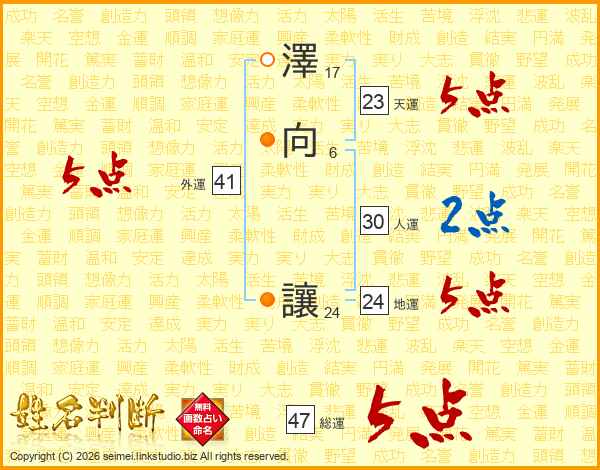 金運 順調 家庭運 興産 柔軟性 財成 創造