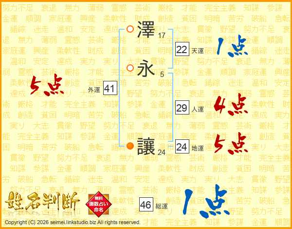 澤永讓さんの人運は29画の4点!