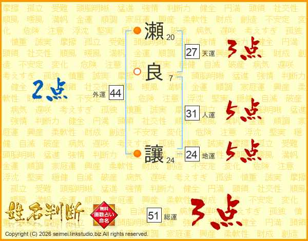 瀬良讓さんの総運は51画の3点!