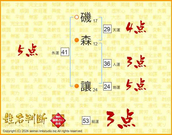 磯森讓さんの天運は29画の4点!
